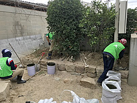・土曜日に作業した歯医者前のスロープと花壇の土砂撤去を行いました。本日花壇の中の土砂をすべて撤去することが出来ました。