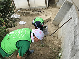 ・家屋内の土砂を中庭に運び出して、その土砂を土砂置き場まで運搬する作業と、家屋内の貴重品探しをしました。