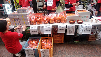 (2)杷木久喜宮の組合員からの依頼で、川端通商店街の出店支援(朝倉産の柿・梨他復興販売)。