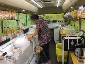 ・お買い物は、毎回15名程の方が来られて、順番に車内に入って買い物をされています。