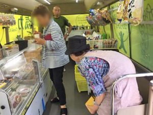 ・台風の影響で南阿蘇地域(馬立団地・立野地区)は風雨が強く、元気カーまで来られるのは難しいと判断し、利用者を中心に個別に訪問して回りました。利用者には注文を聞いてお届けしました。