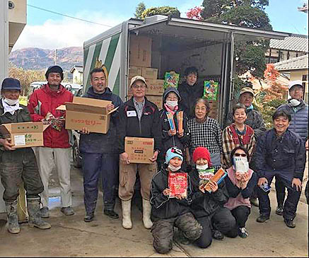 福岡から届いた物資を、被災された八ケタ会のメンバーと赤沼地域の方にお配りしました。