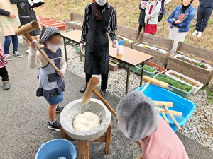 ・餅つきは、地元の男性たちが「よいしょ、よいしょ」と掛け声をかけ交代しながら楽しそうにつかれていました。