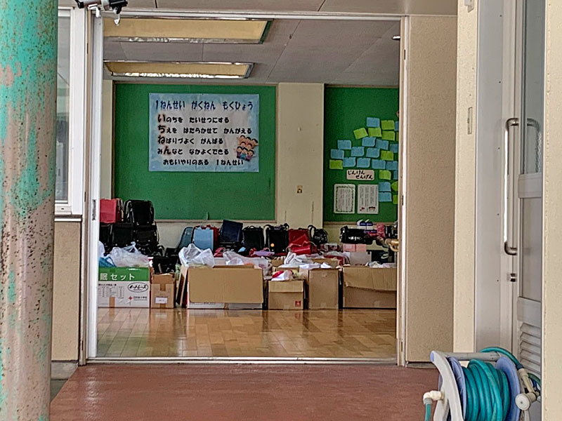 ④ 球磨村の村外避難所となっている人吉第一小学校にお伺いしました。こちらの避難所は、45世帯の108人が避難されています。こちらではグリーンコープが今出来ることをひと通りお話しし、また連絡していただくことにしました。