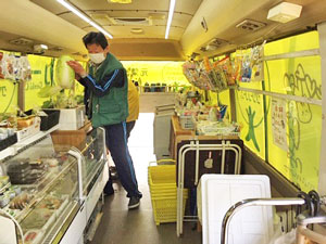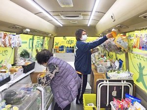 舞原第二団地では、毎週商品をもって訪問するお宅があります。仮設の時から訪問している方で、いつも楽しみにされています。飲み物を必ず2人分用意されていて15分程おしゃべりをしてきます。おしゃべりしている時が楽しそうで、伺うことがこちらも楽しみになります。