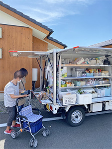 立山商店では、いつもの常連さんの他に、ここに来ていたお客さんも、移動販売車に興味深々な様子で、元気カーを見回されていました。お惣菜を買っていかれました。
