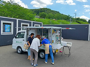 芦北町白石地区、芦北町女島仮設団地、球磨村神瀬地区7箇所(日当、永椎、四蔵、松野、上原、蔀、松本)で地域の見守り活動を含む移動販売を行いました。