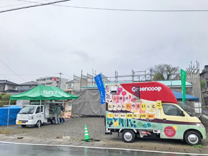 人吉市内の仮設住宅への見守り活動を兼ねた移動販売を行いました。