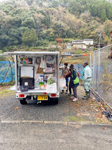 球磨村、芦北町において見守り活動を兼ねた移動販売を行いました。