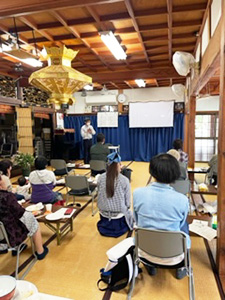 黙食タイムのゲストは地元安浦の瓦屋さんです。以前は信楽寺のご近所にお住まいだったそうで懐かしいお話しや、地域によって瓦の種類が違ったり、焼く温度だったり、いろいろあるそうです。東広島市で、珈琲店のオーナーさんもされています。