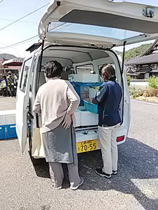 「私たちが着く前から集会所前で話が盛り上がって楽しかった」とお話頂きました。苺アイス、たこ焼き、もめん豆腐他を購入頂きました。