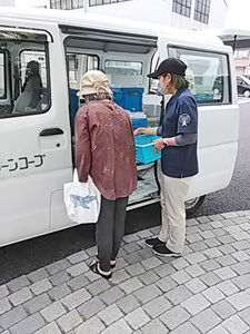 以前来て下さったことのある方が、小麦粉をお探しで来て下さいました。グリーンコープが来ていることを分からなかったようで、「毎週月曜の13時ごろに来てますよ」とお伝えしました。