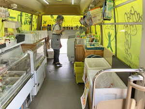 田原団地ではいつも訪問しているおばあさんのご自宅にお伺いすると「今日は体調がいいので出て来る」と言われて押し車を押して元気カーまで来られました。乗車されるのは厳しいという事でしたので、車の後部からやり取りをしながらお買い物をされました。ヨーグルトや冷凍食品を数点購入して行かれました。わざわざ家から出てきてもらって嬉しくなりました。