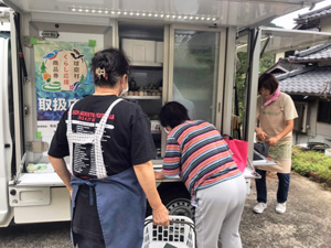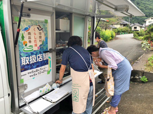 球磨村神瀬地区、松本地区、芦北町白石地区において見守り活動を含む移動販売を行いました。