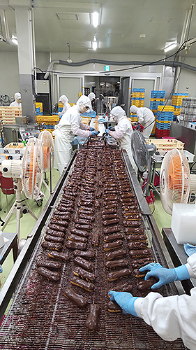 エクレアのチョコ掛けはなんと手作業!