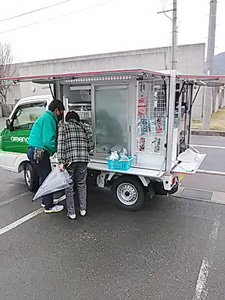 毎週、移動販売車で商品を見ながら購入できる買い物を楽しみにしていただいています。