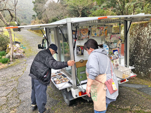 四蔵地区、上原地区、蔀地区では3人ずつお客様がみえたので買い物しながらのおしゃべりもはずみ、移動販売の醍醐味を感じることができました。