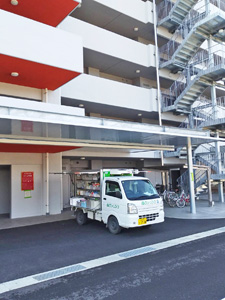 球磨村の災害公営住宅であるエスペランサ桜峯では、元気カーが到着する時間には5人も待ってくださっていて賑やかにお買い物をされました。お部屋まで商品をお届けしている方のところでは、「あれも欲しい」「これはないの?」とリクエストがあり、3往復することになりました。それだけ頼りにしてくださっているようです。