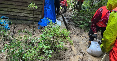 本日、グリーンコープ災害支援メンバーが、輪島市門前で土砂かき作業を行いました。現場までの道のりは険しく至る所で土砂崩れが起きていました。現場の家屋には、大量の土砂が入っていて作業は難航。雨も止まず側溝が一部見えるぐらいで作業を打ち切りました。