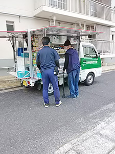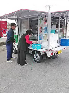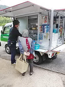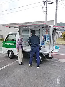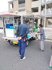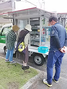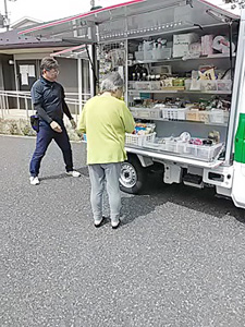 「どれぐらいの件数まわってるの?」とご質問を受け、「木曜日は8カ所まわっています」とお話しすると、「大変だけど頑張ってね」と声をかけていただきました。産直赤とんぼ米のごはん(パックごはん)、つぶあんぱん、たまねぎ天、他をご購入いただきました。