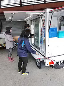 到着前からお待ちいただいていたようで、「井戸端会議が盛り上がったよ~」とお話しいただきました。絹ごし豆腐、合わせこだわりみそ、芋かりんとう、他をご購入いただきました。