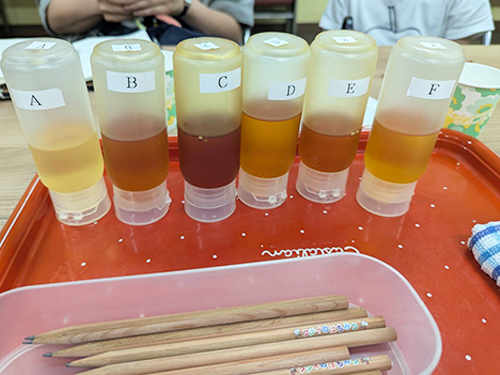 今回の見学で、藤井養蜂場のはちみつは品質管理と温度管理がしっかりしており、そこが美味しさの秘訣だとわかりました。国産はもちろんのこと、外国産のはちみつでも安心して購入出来ることも知りました。ハチの生態など知らないことばかりで得ることが多い学習会でした。子どもたちも真剣に話を聞いていました。色々な種類のはちみつの試食も出来たので自分好みのはちみつを知り、お買い物のヒントになりました。夏休み企画として子どもたちと一緒に見学出来たのでよい思い出となりました。