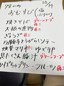 週末にお祭りがあるとのことで、沢山の方に来ていただきました。パンプキンロール、骨とり国産さばの生姜煮、厚切りポテトチップス(うすしお味)、他をご購入いただきました。