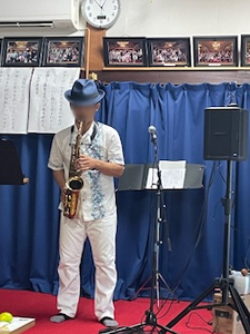 ゲストは焼山在住の竹中さんに尺八、サックスを演奏していただきました♪昭和歌謡を中心にアンコールでは歌も披露していただき、楽しい時間を過ごしました。