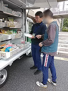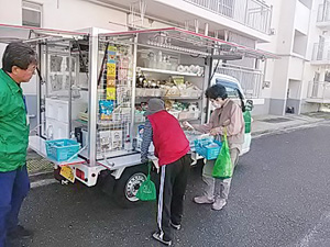 玄関の呼び鈴を押したら大きな声で返事をしていただき、お買い物をしてくださいました。雨を気にされているようでした。みんな元気ヨーグルト、元気いっぱい産直たまご、絹ごし豆腐、他をご購入いただきました。