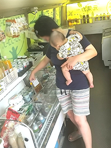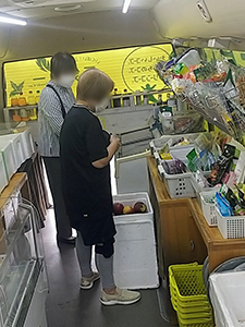 宮山地区では、親子で軽トラックでお昼に食べるものを買いに来られました。惣菜関係とたまごを買って行かれました。特産のさつまいもの収穫でお忙しそうでした。