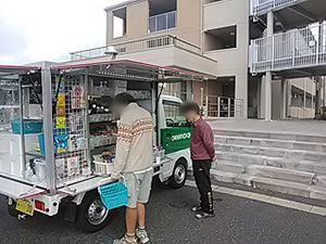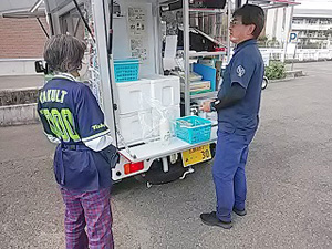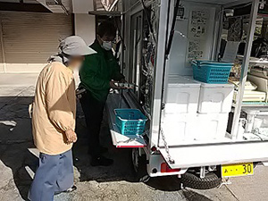 玄関の呼び鈴を押したら大きな声で返事をしていただき、お買い物をしてくださいました。雨を気にされているようでした。みんな元気ヨーグルト、元気いっぱい産直たまご、絹ごし豆腐、他をご購入いただきました。