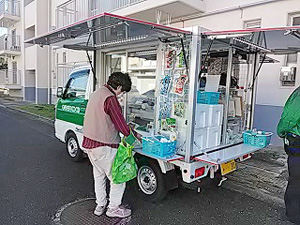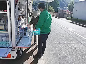 今日も外回り中の方にお買い物をしていただきました。「もう移動販売が来てる頃だな~」と見計らって来ていただいたとのことでした。びん牛乳ノンホモ、もめん豆腐、元気な卵のマヨネーズ、他をご購入いただきました。