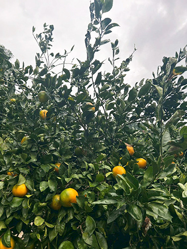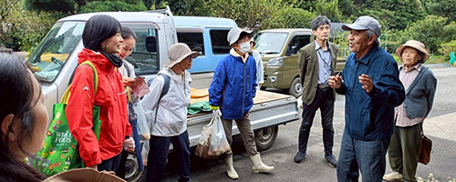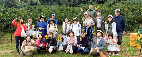 宗像市大穂のみかん生産者 川上農園との交流会を行いました。雨がパラつく中でしたが普段はできないみかんの収穫体験をさせていただき、広い農園を見渡しながら最近話題に上がることが多い鳥獣の被害、気候変動による生産の苦労などをお聞きしました。特に気候変動については子どもたちのためにも私たちが小さなことでもいいから行動を起こすべきと、熱くお話されていたのが印象的でした。みかんは暑さの影響で甘味が少ないと仰っていましたが、とても香りがよく甘くて美味しいみかんでした!