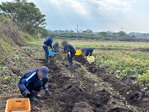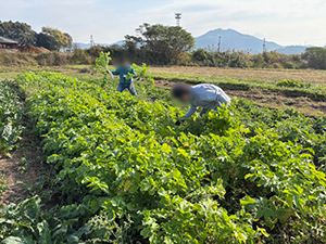 益城町東無田のひまわり畑の奥にある畑でさつまいもの収穫をしました。参加は生活再生相談室と災害支援センターで、生活再生相談室からは支援対象者2名も参加されました。初めて参加する男性はさつまいもを収穫するのが初めてということで、汗をかきながら楽しそうに働いていました。大根、ほうれん草も大きくなったものは収穫して持ち帰ってもらいました。初めて参加の男性は「お母さんが喜ぶ」と嬉しそうでした。