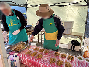 益城町安永地区の芋掘り大会にカレーの販売に行きました。事前に益城町生活コーディネーターの方から「芋掘り大会もするけど地域の子ども食堂のようなものにもしたい」と申し入れがあり、今回は1食100円にしました。芋掘りには大人・子ども合わせて50名ほど来られ賑わっていました。カレーは全てグリーンコープの材料(すご腕カレー、産直若鶏小間切、産直バレイショ、玉ねぎ、人参、チキンコンソメ、なたね油)で作りました。配膳は熊本学園大学のボランティアサークルの皆さんにお願いしました。とても好評で半分くらいの方はおかわりされたようです。3杯食べた子もいました。天気もよく、喜んでいただきよかったと思います。