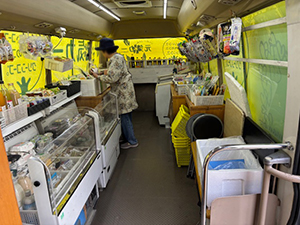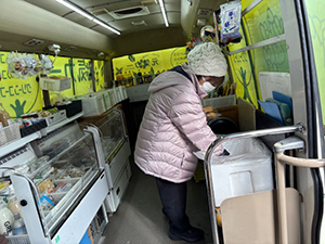 下田地区では、到着すると2名待っておられました。みなさん肉、冷凍食品等をよく買われます。また、観光に来られている方が元気カーの見学に来られました。