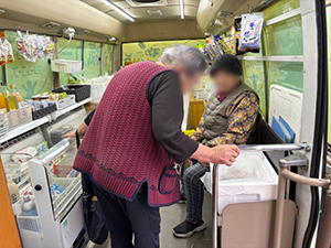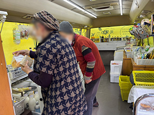 乙女団地では、いつもは娘さんが来られるのですが、久し振りに高齢のお母さんが買い物に来られました。娘さんは用事で県外に行かれているそうで、メモを見ながら買い物をされました。また、別の方は奥さんの代理でご主人が買い物に来られました。