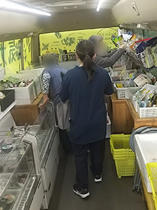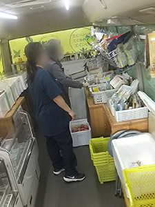 菊陽町の福祉施設へ移動販売に行きました。今回2回目で不定期ですが、入所されている方が希望される時に伺うことにしています。今日は6名の方が買い物されました。