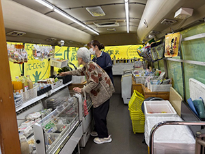 乙女団地では、いつもは娘さんが来られるのですが、久し振りに高齢のお母さんが買い物に来られました。娘さんは用事で県外に行かれているそうで、メモを見ながら買い物をされました。また、別の方は奥さんの代理でご主人が買い物に来られました。