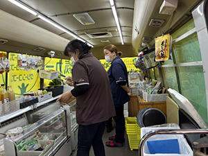菊陽町の福祉施設へ移動販売に行きました。今回2回目で不定期ですが、入所されている方が希望される時に伺うことにしています。今日は6名の方が買い物されました。