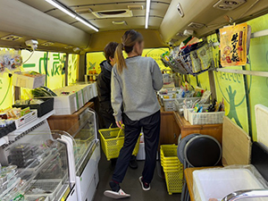 下田地区では、到着すると2名待っておられました。みなさん肉、冷凍食品等をよく買われます。また、観光に来られている方が元気カーの見学に来られました。