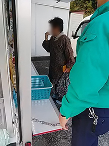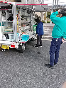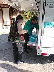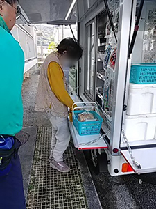 ちょうど別の移動販売車が引き上げるところの流れでお買い物を楽しんでいただきました。以前よくお買い物いただいていたお母さんの娘さんにも来ていただき、「母が足腰が弱って来れなくなってるんです」とお話しいただきました。新生酪農生乳100%ヨーグルト、すずまる小粒納豆、天ぷら粉、他をご購入いただきました。