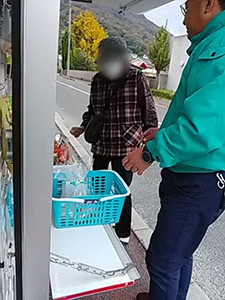 今日は玄関を開けてお待ちいただいていました。「腰が痛いんよ~」等とお話しいただきました。いろいろおでんセット、元気いっぱい産直たまご、厚切りポテトチップス(うすしお味)他をご購入いただきました。