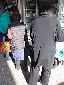お父さんが階段を降りて来られる時に階段を踏み外され転倒。一時はどうなるかと思いましたが怪我などなく、一休みすると立ち上がられました。皆さんの安全を確保しつつ、お買い物を楽しんでいただかなければと気の引き締まる出来事でした。