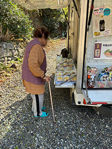 永椎地区では、車を停車すると玄関前に立って待たれていました。お菓子やお惣菜、パンを買われました。