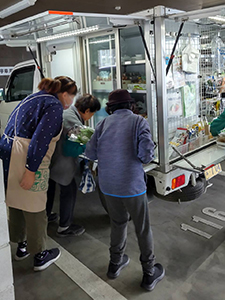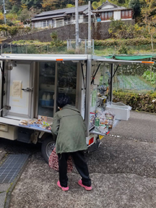 球磨村公営住宅、球磨村各地区で、見守り活動を含む移動販売を行いました。