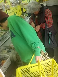 舞原第二団地では、毎週訪問しているおばあちゃんが「大根をもらったのでおでんをしたい」と言われ、練り物、こんにゃく等を買われました。