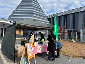益城町地域団体合同イベントに参加しました。これは益城町で活動している団体の紹介の場になります。商品の販売や団体の活動の紹介等様々です。災害支援センターは益城町東無田で栽培したさつまいもを使ったいも天とグリーンコープの肉まん、パオズの販売をしました。天気は良かったのですが、来客が昨年半分程でした。同じ日に木山川沿いでマルシェが開催されていてそちらに行かれた方も多かったそうです。販売については肉まんとパオズ、いも天は好評でした。どれも熱々を食べられた方は「おいしい」と言っていただきリピートされた方もいらっしゃいました。