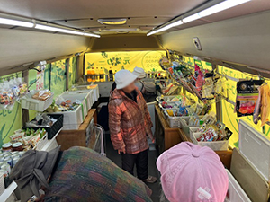 下田地区では、到着するとおばあちゃんが待っておられました。いつもリュックを担いで来られます。今日もたくさん買い物をしてリュックに詰めて歩いて帰られました。