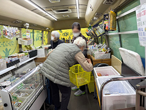 宮園団地に到着してしばらくすると、団地のおばあちゃんが急いで来られました。「グランドゴルフをしていて・・・間に合ってよかった」と買い物をされました。